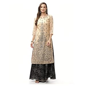 BIBA Women’s Beige Rayon A-Line Printed Kurta