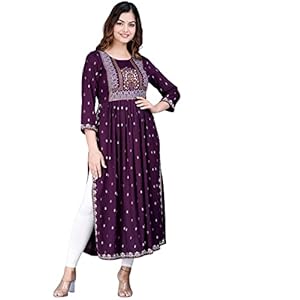 rytras Women’s Rayon Printed Purple Nayra Cut Flared Kurta (Large)