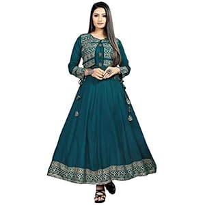 HAPPY DESIGN Women’s Rayon Anarkali Kurti with Jacket Rama