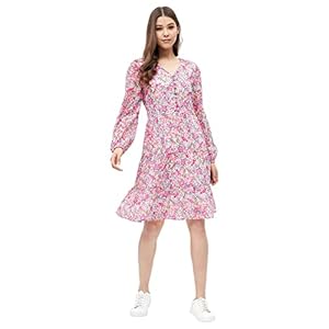 Harpa Women’s Georgette Fit and Flare Midi Casual Dress (GR6356- Multi_Medium) Multicolour